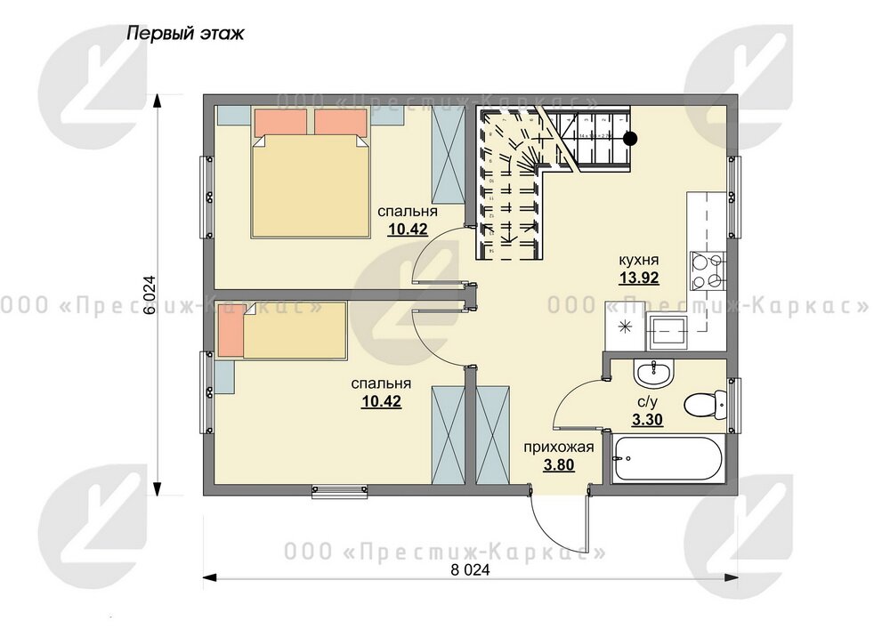 1 этаж: 2 спальни, кухня-гостиная, с/у.