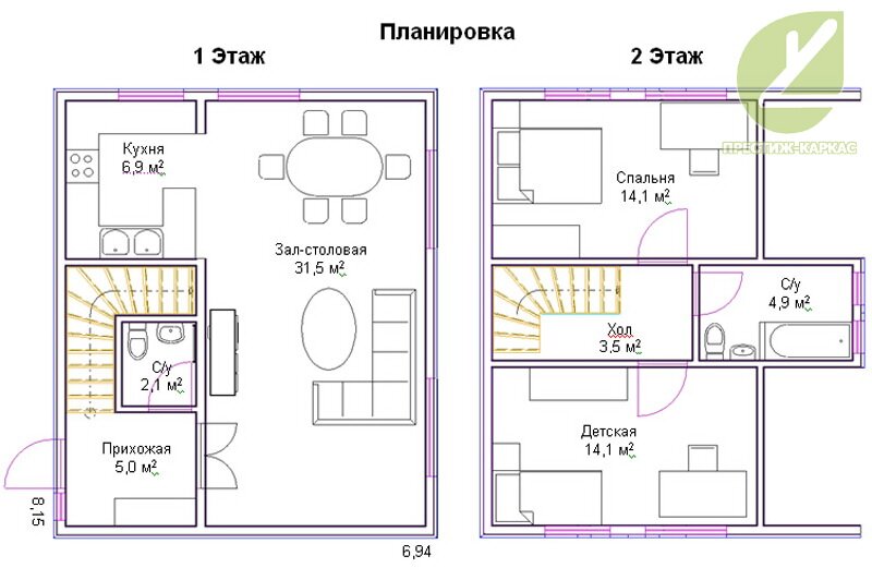 1 этаж: гостиная, кухня, с/у.